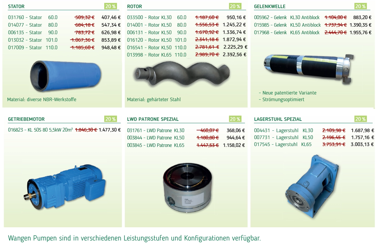 Jetzt bis zu 25 % Rabatt auf Wangen-Pumpen Ersatzteile!