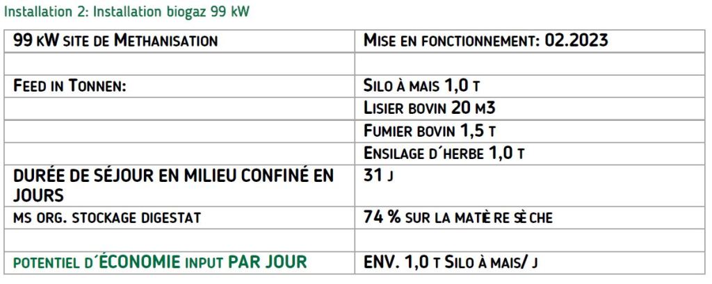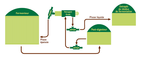 Ce filtre de retour de biomasse peut être intégré de différentes manières dans l’installation de biogaz et s’intègre ainsi dans un cycle global.